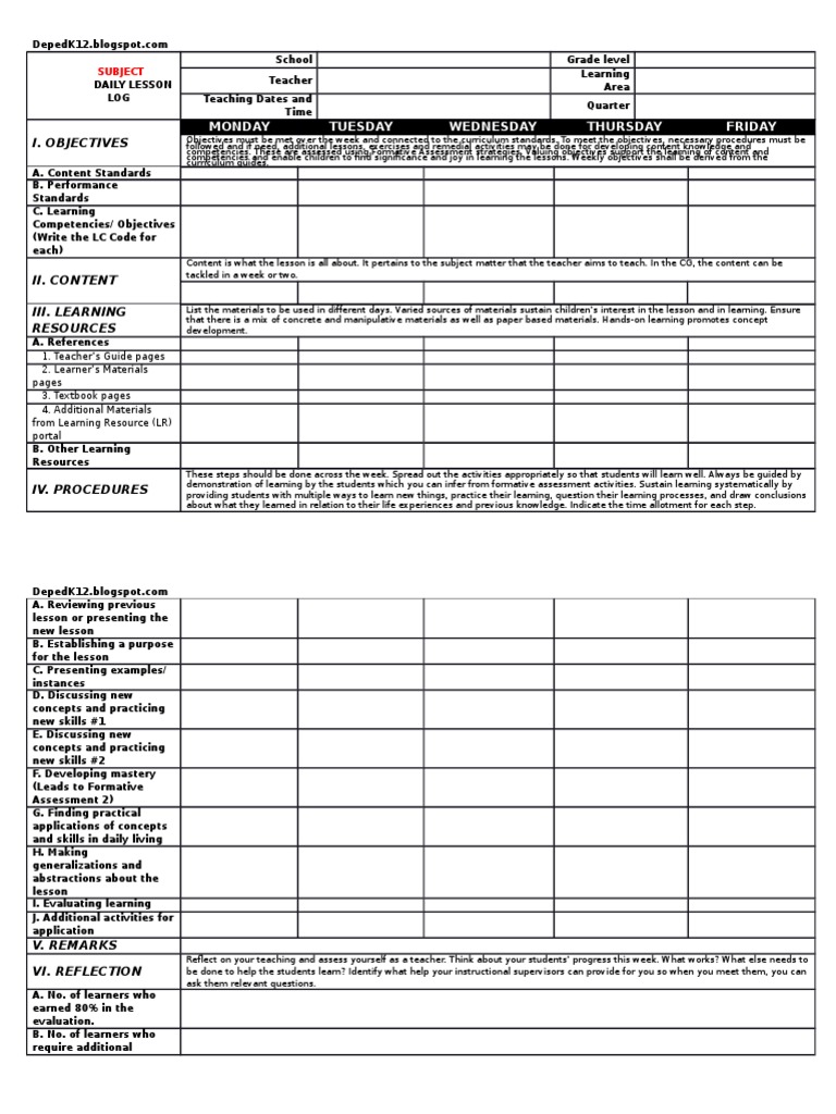 Download Ready Made Daily Lesson Log Dll Or Daily Lesson Plan