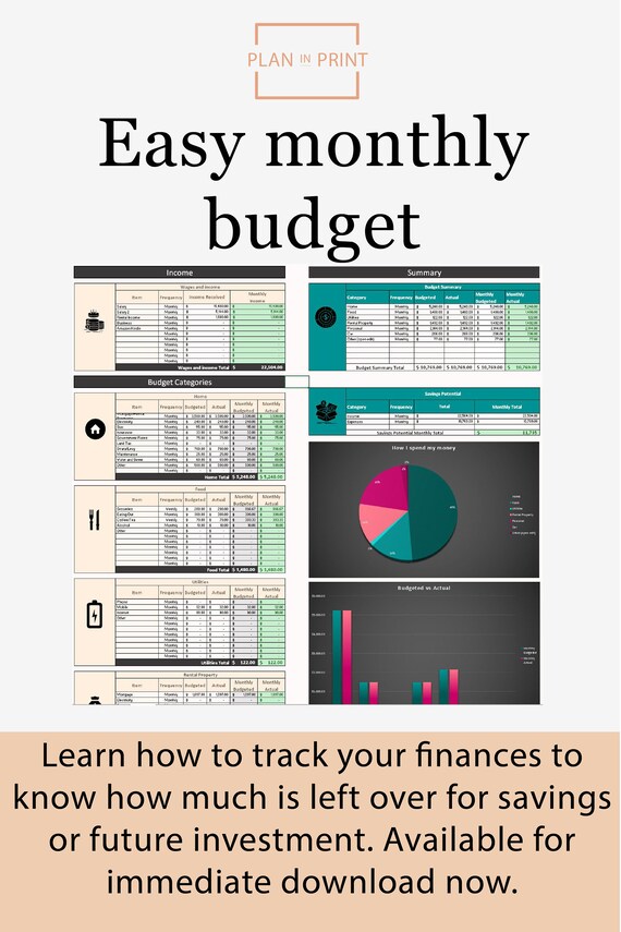 Monthly Household Budget Planner Excel Budget Template Etsy