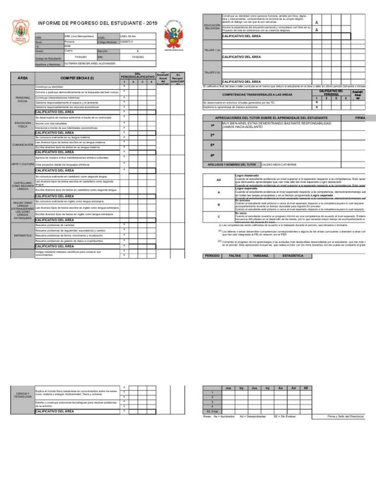 Boleta Nota 6088 2019 Excel 12 Segundo Lenguaje Lengua Espanola