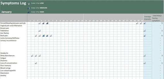 Menopause Symptoms Log Excel Template Women Health Agenda Etsy