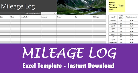 Mileage Log Excel Download Calculates Reimbursement Etsy