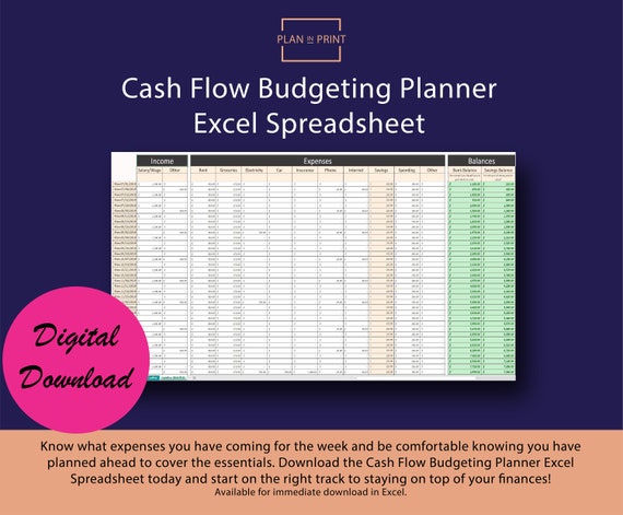Yearly Cash Flow Budgeting Spreadsheet Planner To Easily Etsy