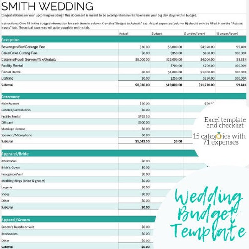 Wedding Budget Tracker Template Comprehensive Wedding Etsy