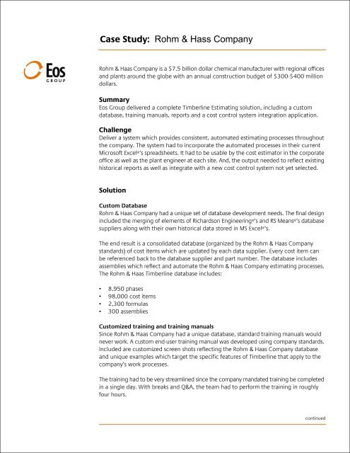 Case Study Rohm Hass Company Eos Group Inc