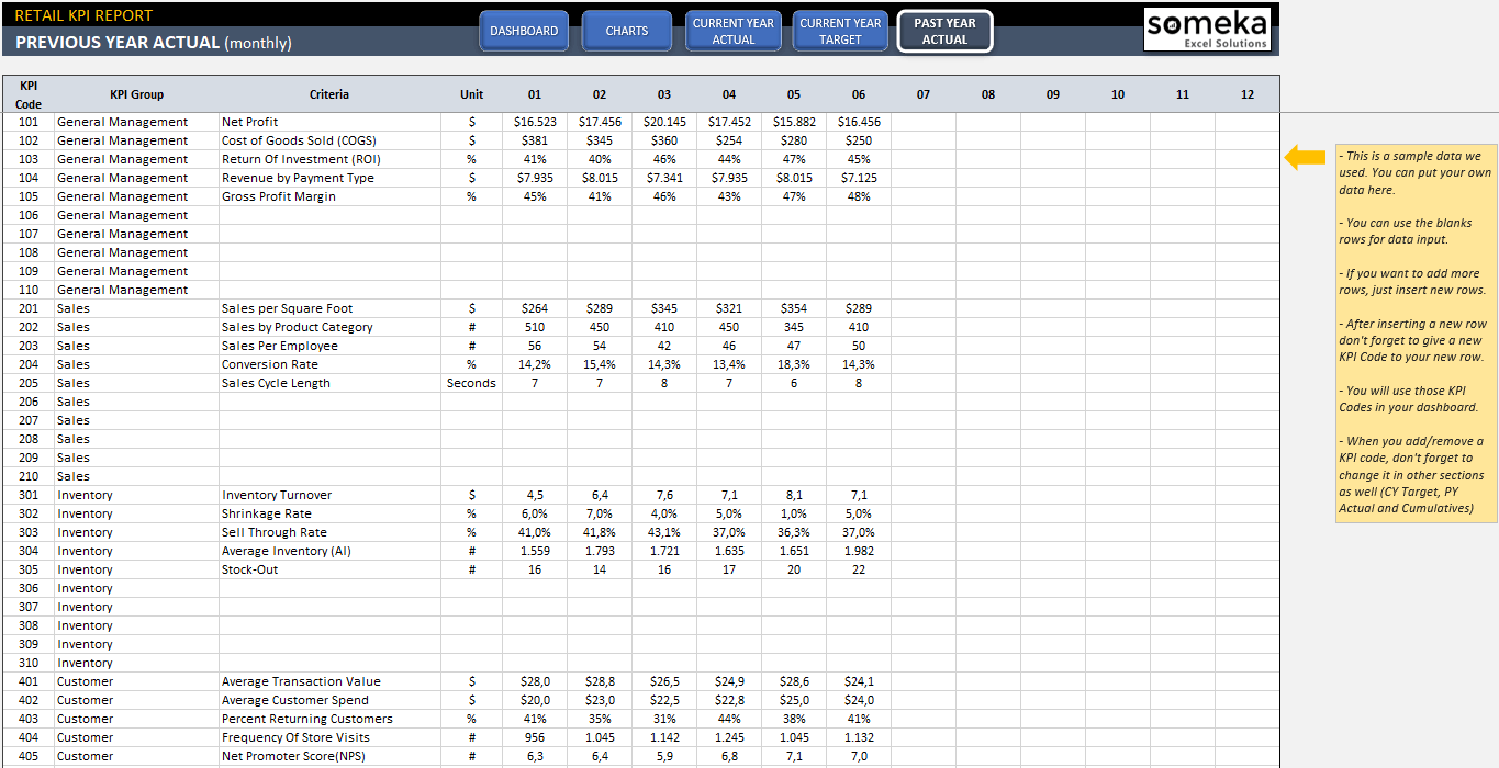 Retail Kpi Dashboard Excel Template Measure Retail Store Performance
