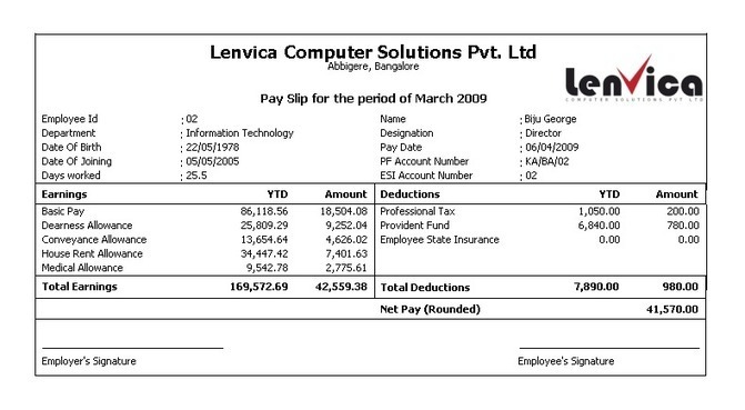 Simple Salary Slip Format For Small Organisation