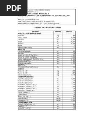 Descarga Gratis Presupuesto De Obra Para Vivienda Tipo Archivos