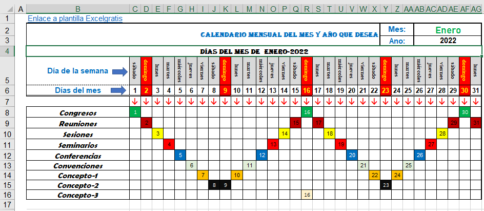 Plantilla Para Visualizar Los Dias De Los Diferentes Eventos