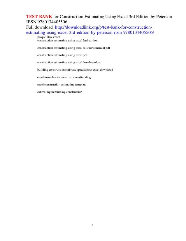 Test Bank For Construction Estimating Using Excel 3rd Edition By Pete