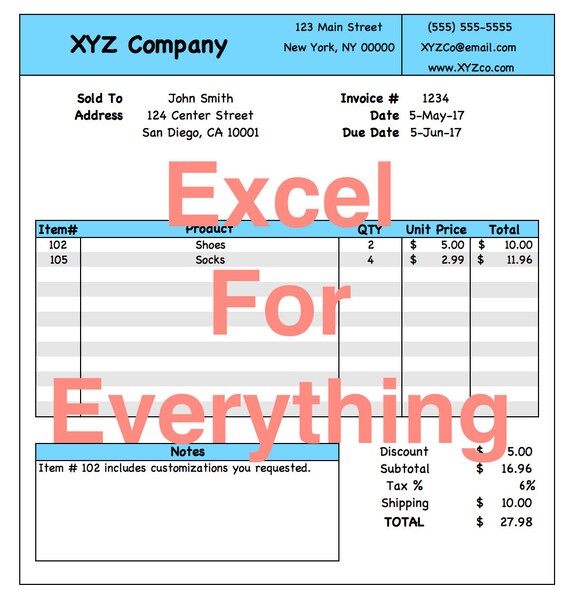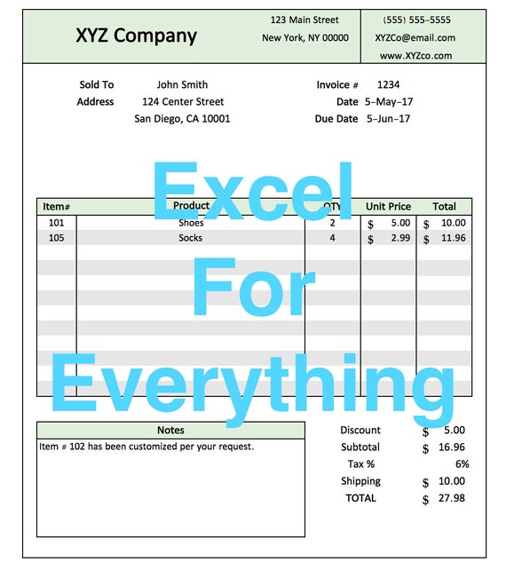 Excel Customer Invoice Template With Automated Calculations Etsy