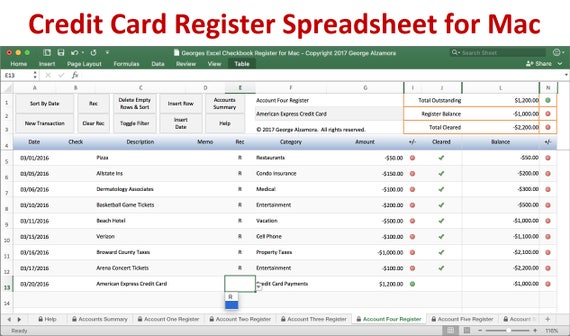 Checkbook Register For Mac Excel Checkbook Spreadsheet Etsy