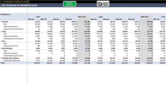 Ecommerce Startup Financial Model Template Excel For Etsy