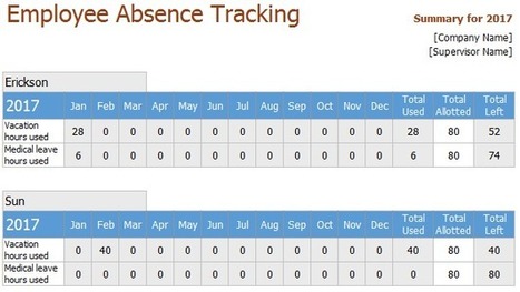 17+ Employee Absence Tracking Excel Template 2017. Can be customized, is color coded, and tracks monthly. You can use a employee absence tracking excel template to track vacation and sick time.